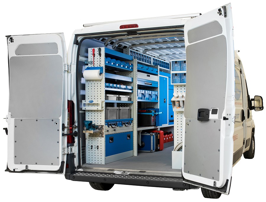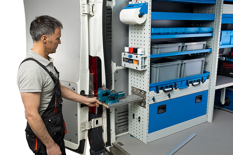 Metal drawers. Our drawers have not changed, but now they no longer require a dedicated cabinet to hold them. Drawers can now be fitted in any position and facing in any direction too. This is particularly useful at your van’s side door as it allows easy access to some drawers without you having to climb into your van first. The remaining drawers can be arranged to open in the normal way, towards the centre of the cargo compartment.